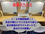 ナビ個別指導学院の授業は、個別の席ごとに設置された自分専用のホワイトボードで解き方や考え方を一緒に確認、それから生徒が問題を解くという「個別授業」スタイルです。