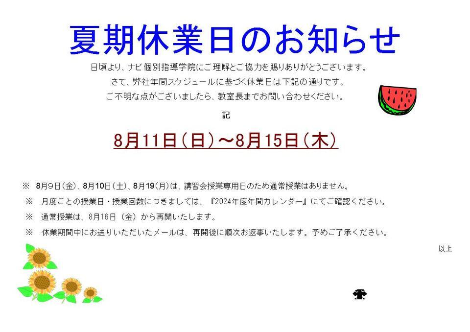 日頃より、ナビ個別指導学院にご理解とご協力を賜りありがとうございます。