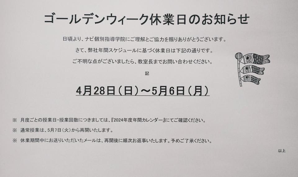 日頃より、ナビ個別指導学院にご理解とご協力を賜りありがとうございます。