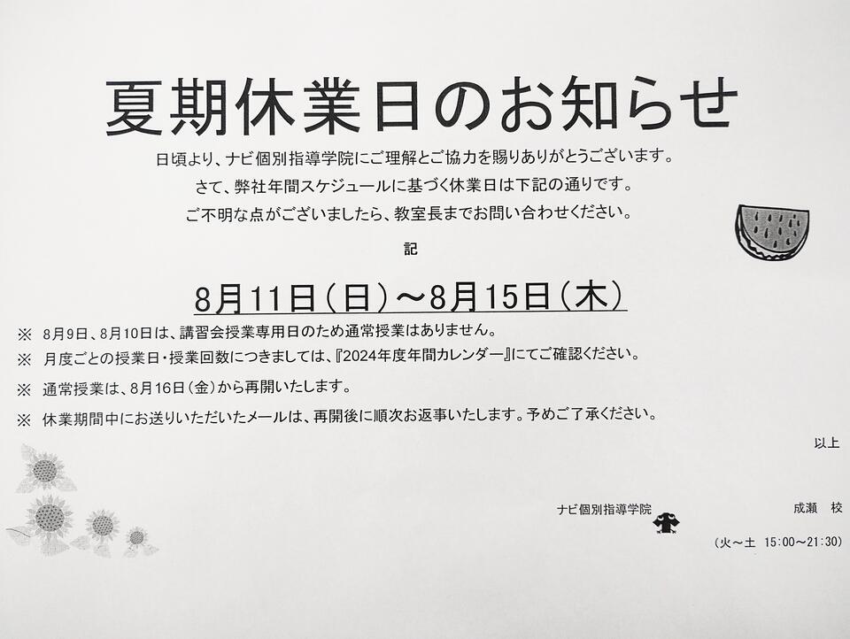 日頃より、ナビ個別指導学院にご理解とご協力を賜りありがとうございます。