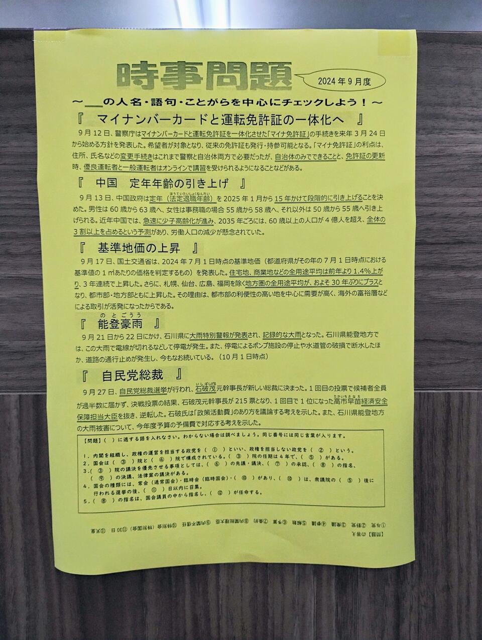 ナビの教室ではみなさんが勉強している机の横に1カ月間に起こっ