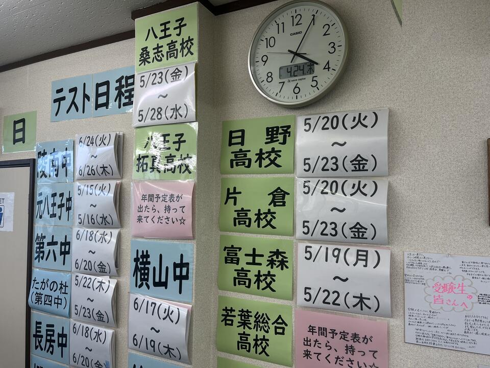 中学校も元八王子中が早く5月15日から中間テストが行われます。