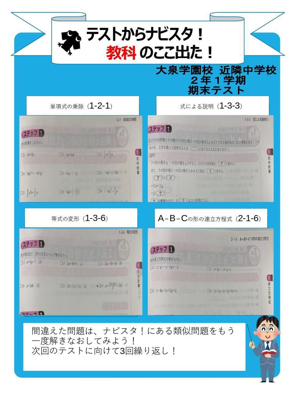 そこで、ナビ個別の自社教材『ナビスタ!』と近隣中学校の前回定期テストの分析を