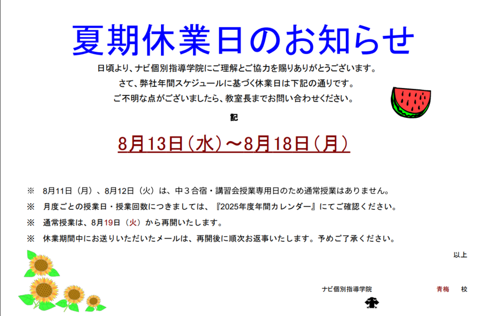 休業期間中に頂いたご連絡は 再開後順次お返事いたします。