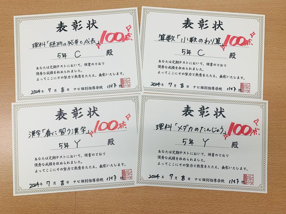 100点を取った時にもらえる表彰状を楽しみに