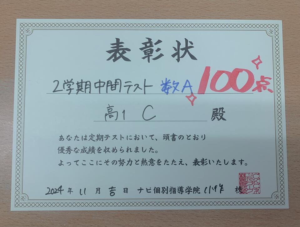 2学期中間テストで