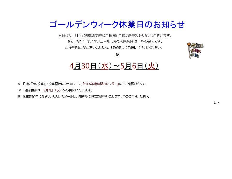 GW休業日についてのお知らせです。