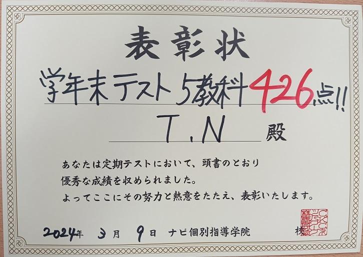 これまでのテストでも総合力を発揮してくれている中2のTくん。