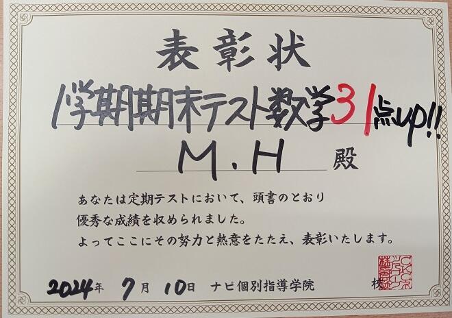 今回紹介するのは、中3のMさん。 4月から入塾し、