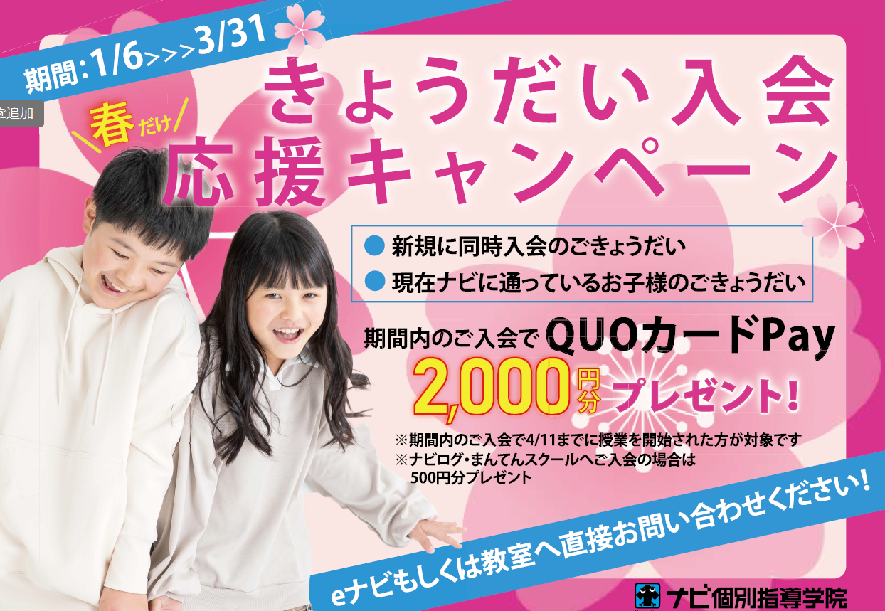 ごきょうだい入会応援キャンペーンを行っております。
