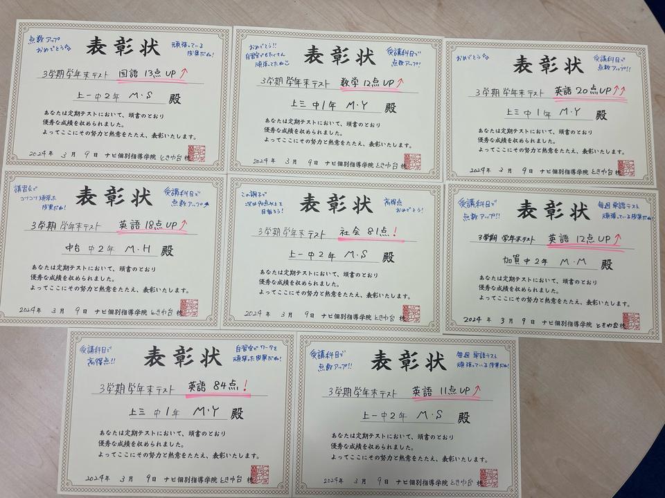 今回は2学期期末テスト点数アップ↑&高得点‼