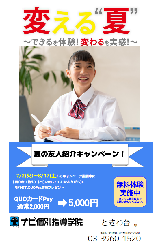 この機会に、ぜひナビ個別指導学院へお越しください。