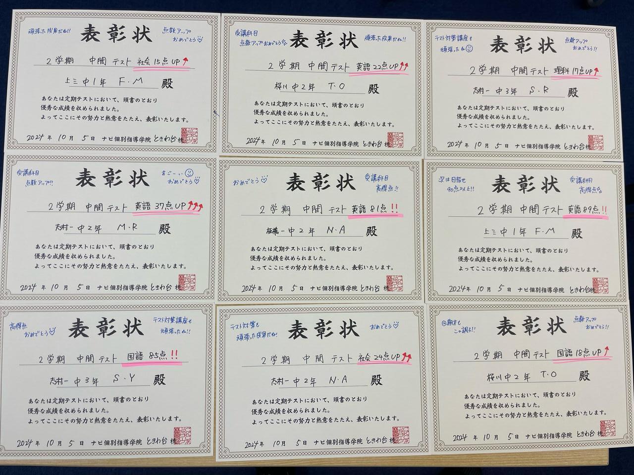 2学期の難しくなるテストで点数アップ&高得点