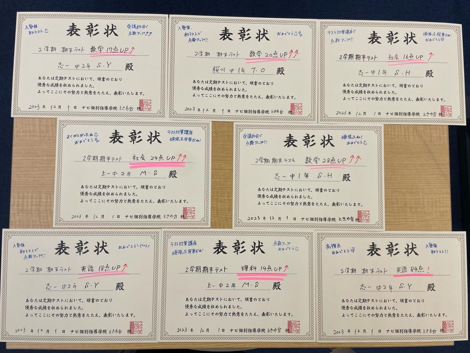 2学期中間テスト点数アップ↑&高得点‼