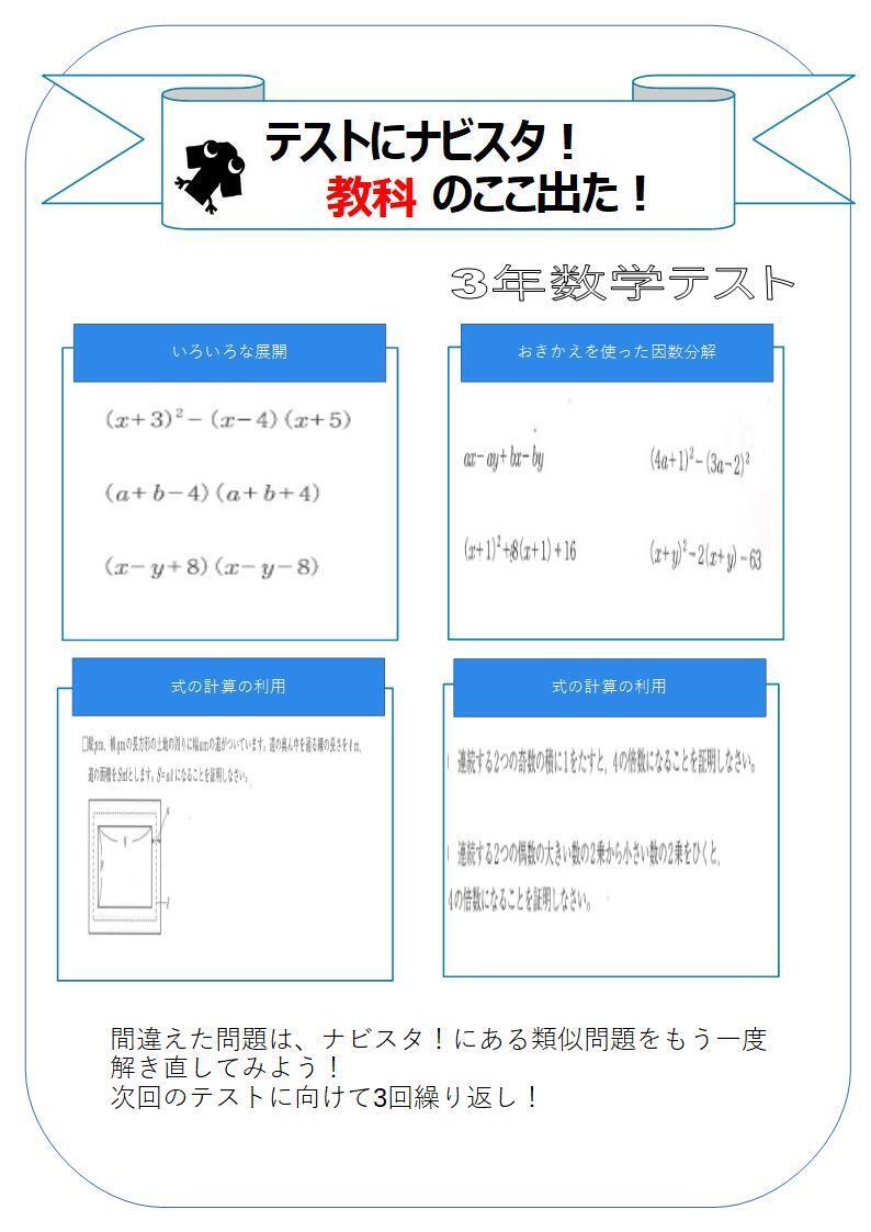 そこで、ナビ個別の自社教材「ナビスタ!」と近隣中学校の6月に行われた定期テストの