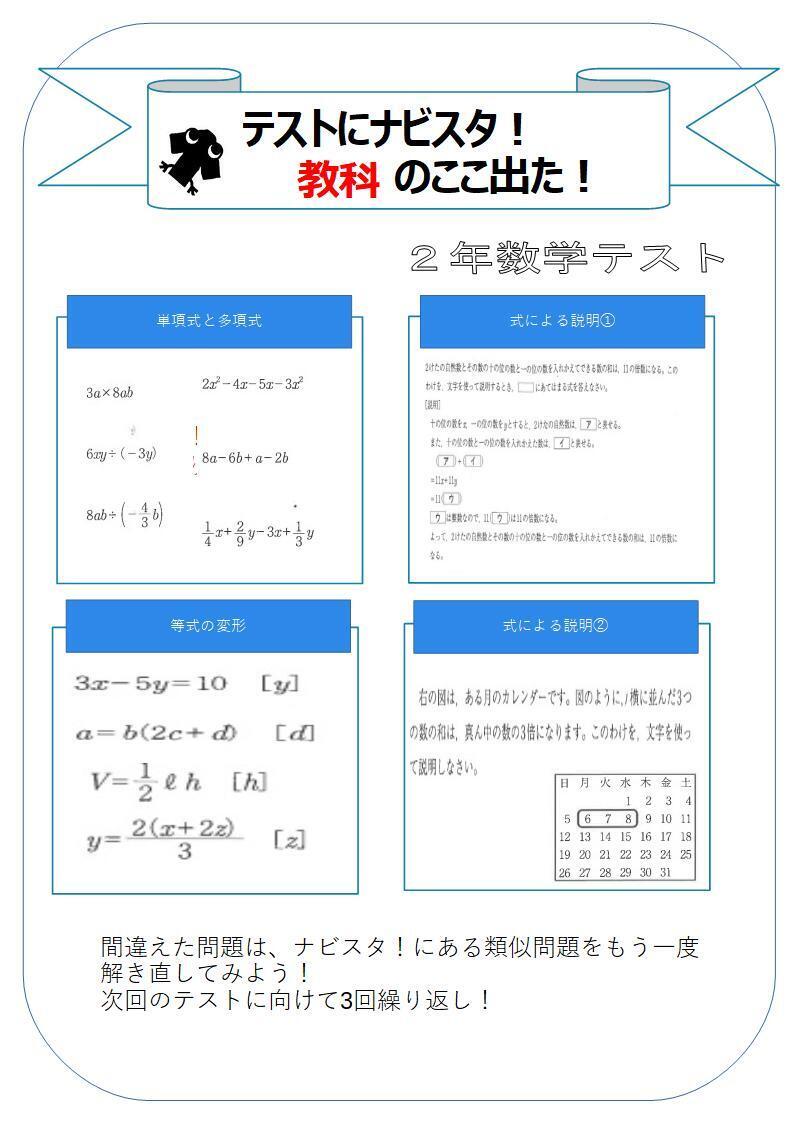 ナビで使用しているナビスタの教材に載っている類題の多くがテストに載っておりましたので