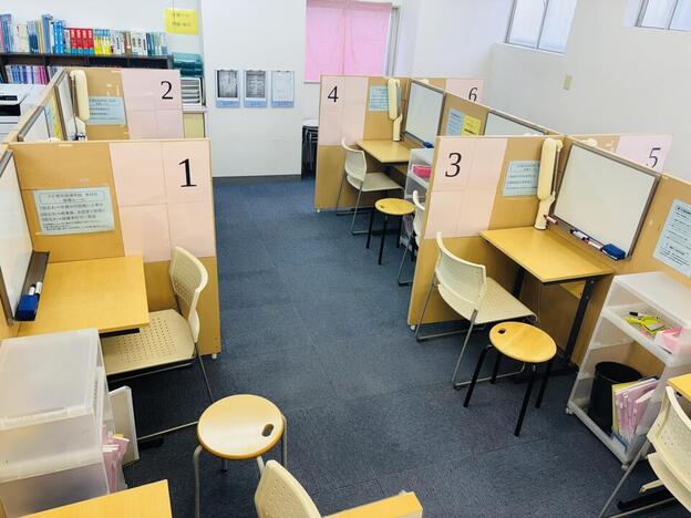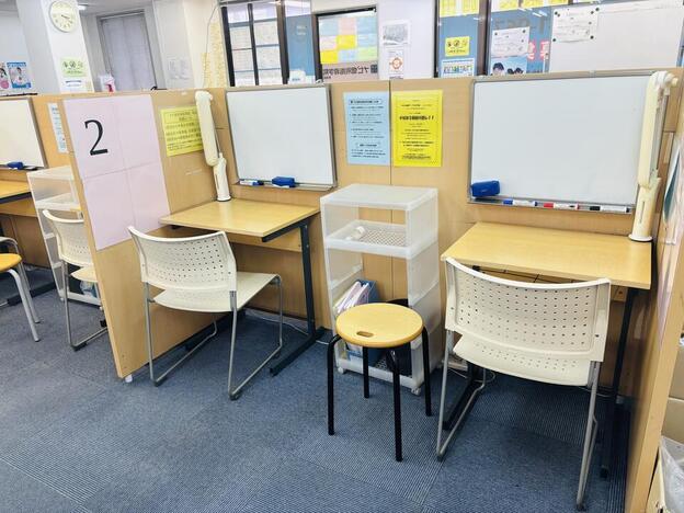 ナビ個別指導学院の授業は、個別の席ごとに設置された自分専用のホワイトボードで解き方や考え方を一緒に確認、それから生徒が問題を解くという「個別授業」スタイルです。