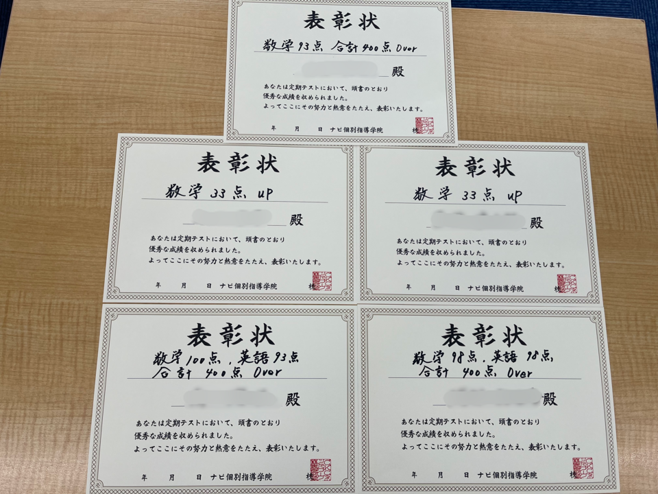 ナビ個別指導学院では、予習を行い、テストまでにテキストを3回繰り返すことで成績アップを目指しております!