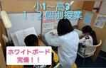 ナビ個別指導学院の授業は、個別の席ごとに設置された自分専用のホワイトボードで解き方や考え方を一緒に確認、それから生徒が問題を解くという「個別授業」スタイルです。