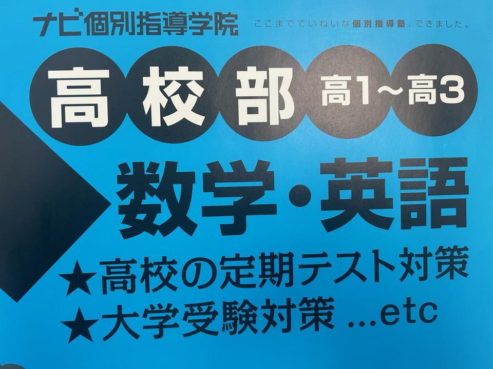 ナビ個別の高校生指導では、中学生同様に予習授業を基本として定期テストで結果を出すことに注力していきます。