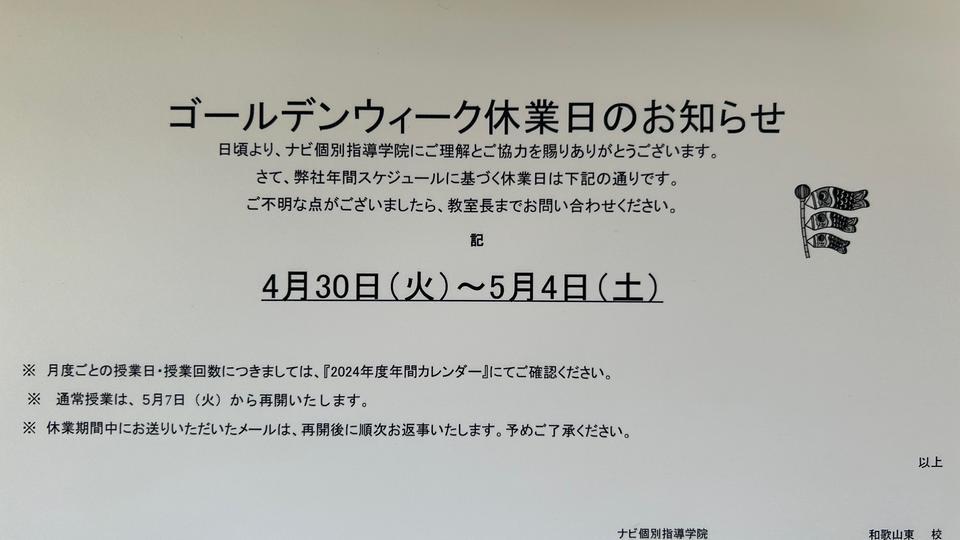 > GW(ゴールデンウィーク)休業日のお知らせ