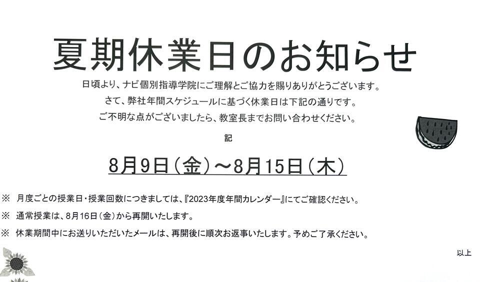 本日は夏期休業日のご案内です。