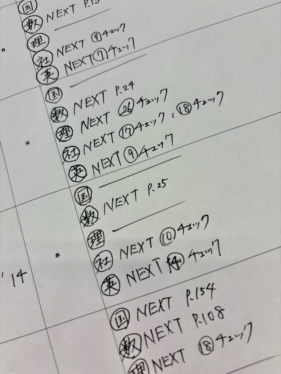 計画を立てたらカレンダーや表を作り、1 日にやる予定のページ数を書き込んでいきましょう。