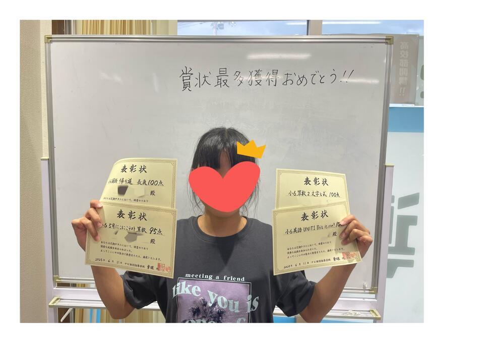 ①テストで高得点を次々と!各教科合わせて4枚の賞状を