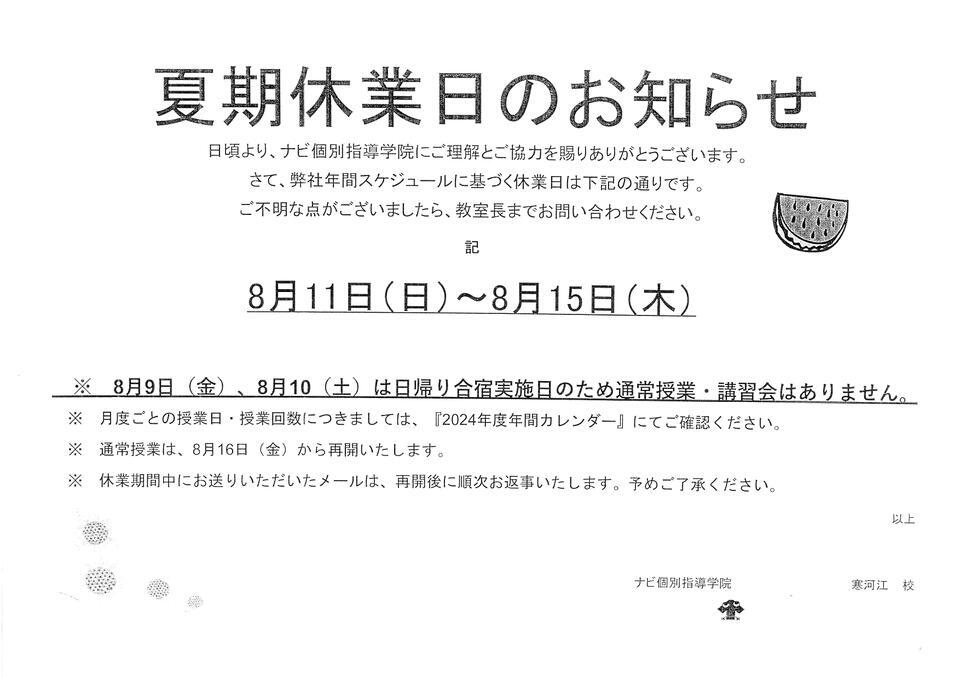なお休業期間中にお送りいただいたお問合せ、お電話等は再開後に順次お返事いたします。