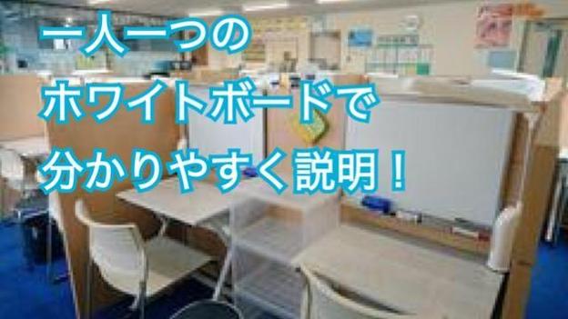 ナビ個別指導学院の授業は、個別の席ごとに設置された自分専用のホワイトボードで解き方や考え方を一緒に確認、それから生徒が問題を解くという「個別授業」スタイルです。