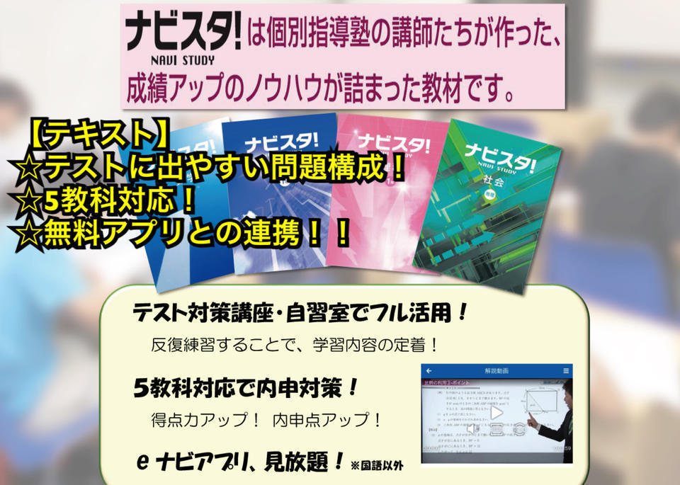 ナビ個別では無料の学習相談や体験授業も実施していますので、自分に合った勉強方法を一緒に見つけていきましょう!!^^