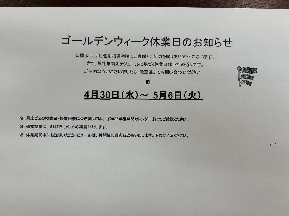 来週からいよいよゴールデンウィークですね。
