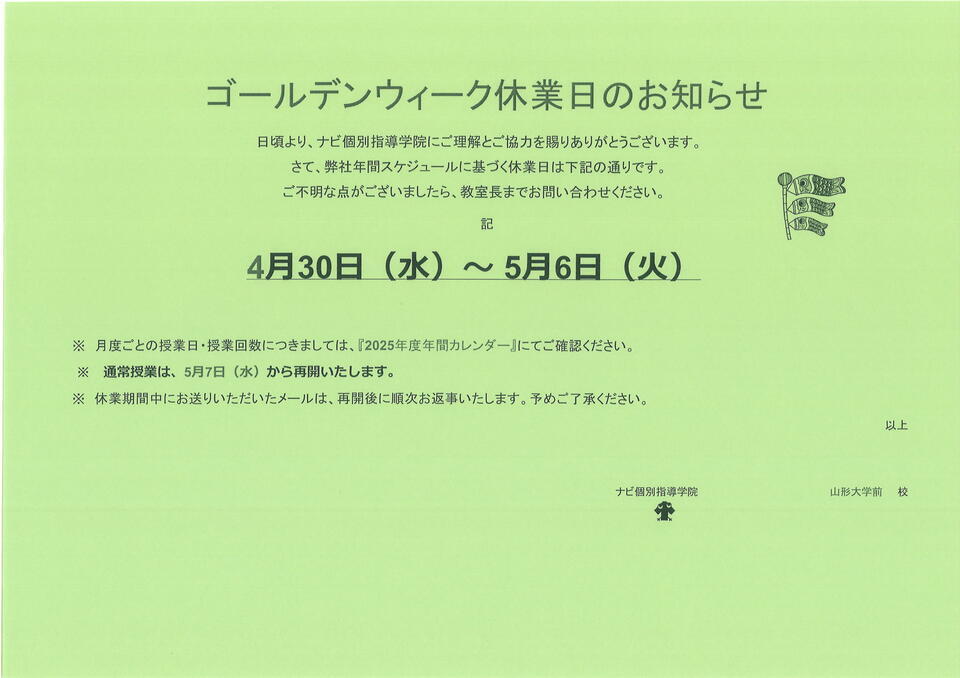 日頃より、ナビ個別指導学院にご理解とご協力を賜りありがとうございます。
