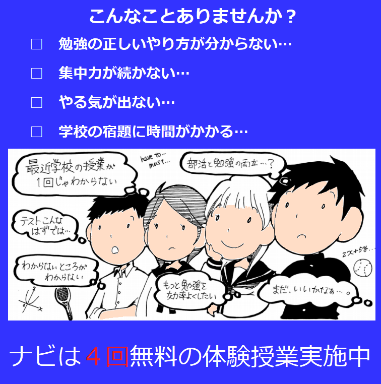 ナビ個別指導学院では、「自分でできた!」を増やせる授業を目標にしています。勉強が大好きになるまで求めなくても、「自分にもできる!」と感じることが、勉強をする第一歩です。