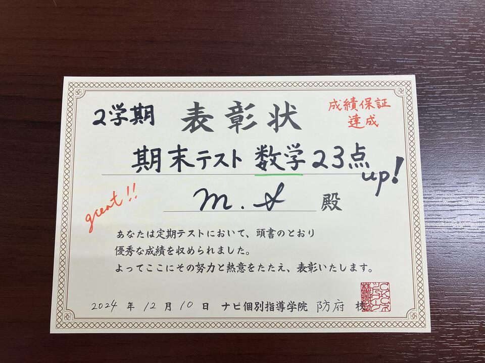 M中学校2年 2学期期末テスト 数学23点アップ!