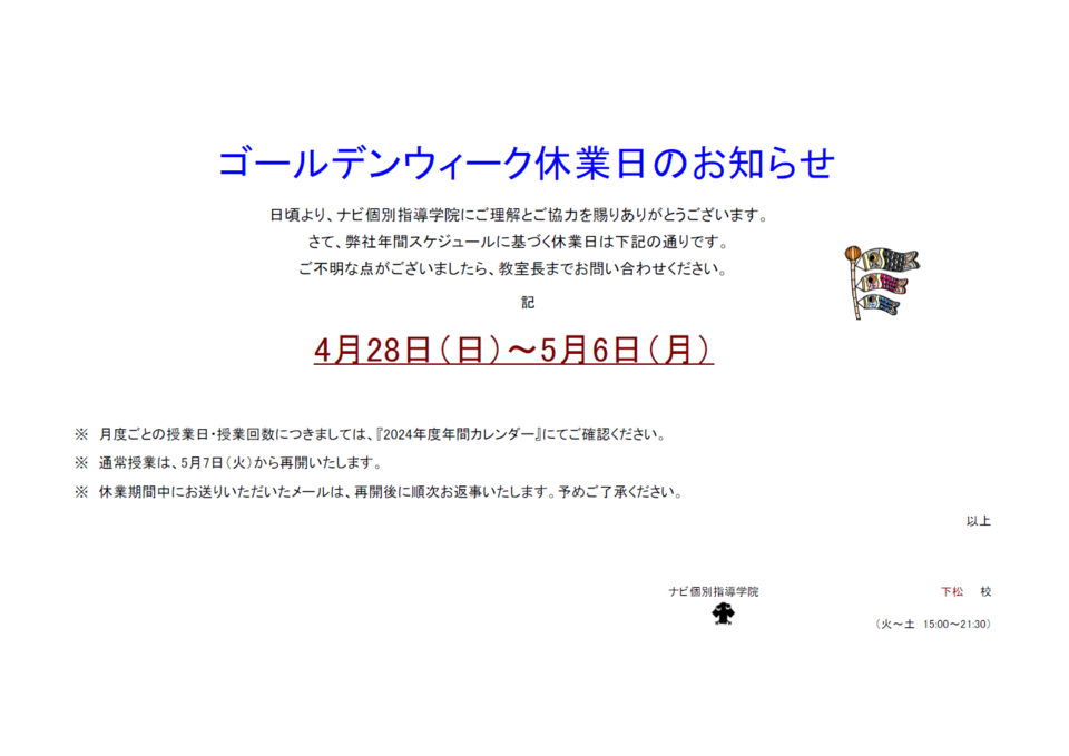 ナビ個別指導学院にご理解とご協力を賜りありがとうございます。