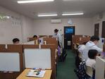 ナビ個別指導学院の授業は、個別の席ごとに設置された自分専用のホワイトボードで解き方や考え方を一緒に確認、それから生徒が問題を解くという「個別授業」スタイルです。