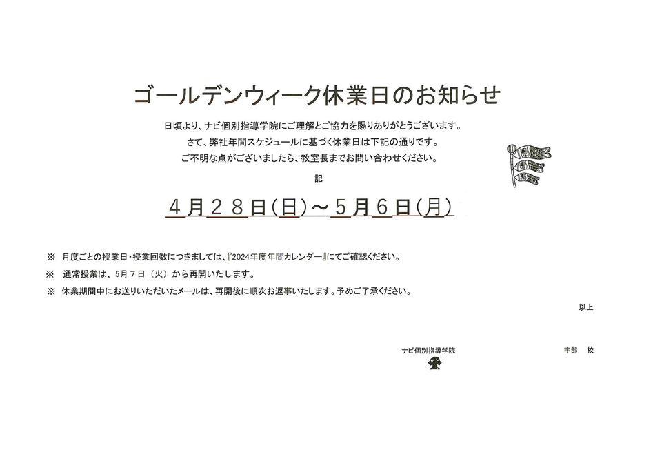ナビ個別指導学院にご理解とご協力を賜りありがとうございます。