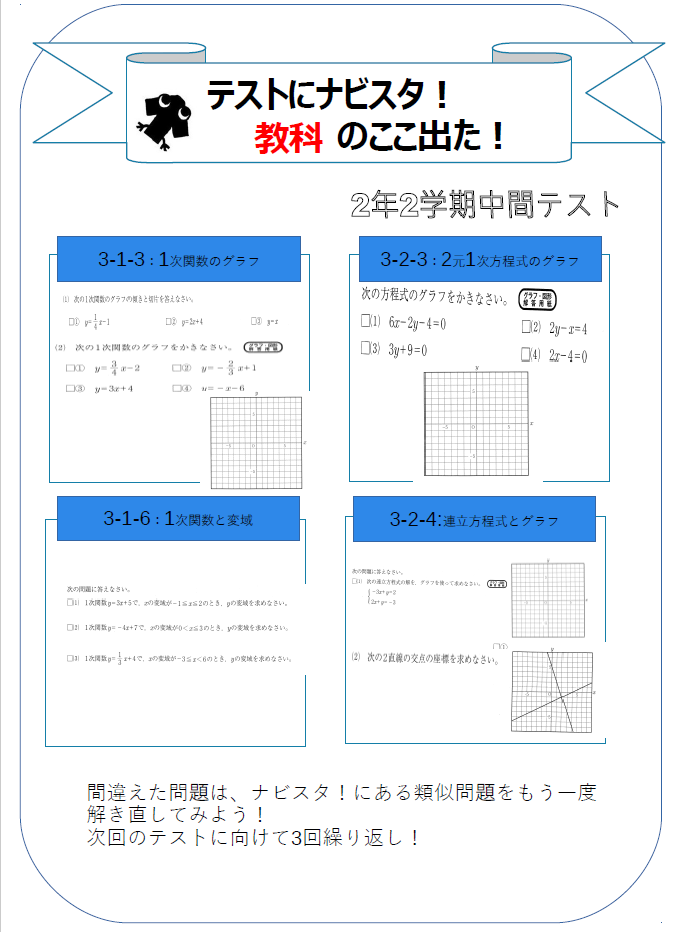 2学期では、グラフがメインとなっており基礎力に加