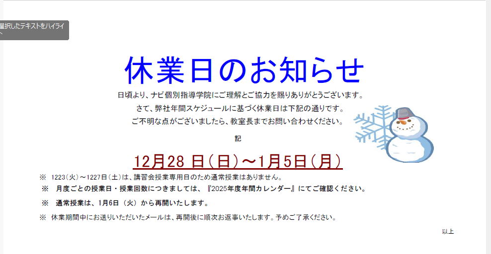 少しでもお勉強の不安は、今年のうちに解決してしまいませんか?