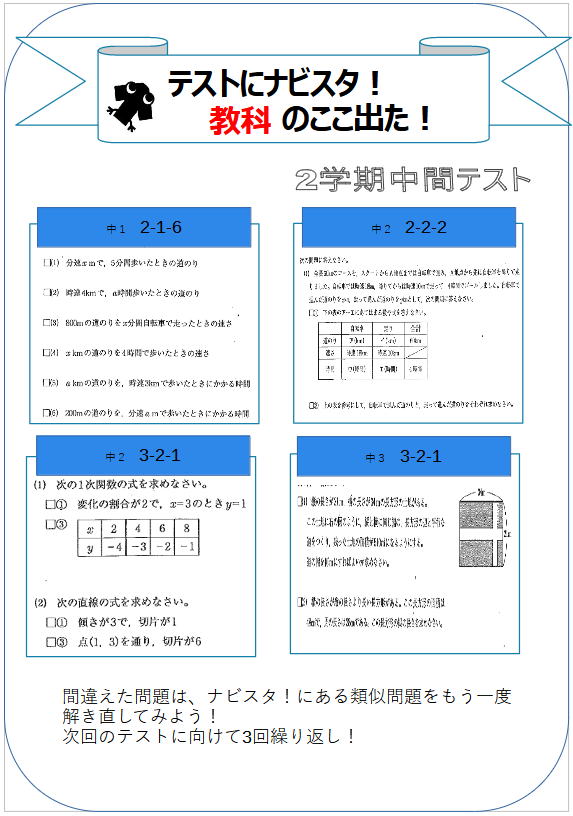 来月実施される期末テストでは、今回のテストの内容をベースに