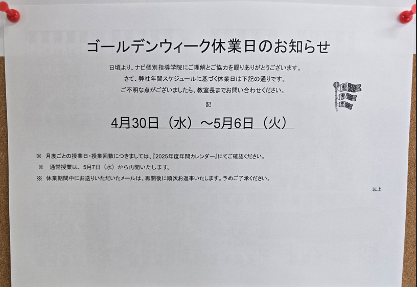 4月30日(水)~5月6日(火)はゴールデンウイーク休業日のため、