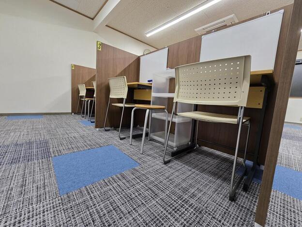 ナビ個別指導学院の授業は、個別の席ごとに設置された自分専用のホワイトボードで解き方や考え方を一緒に確認、それから生徒が問題を解くという「個別授業」スタイルです。