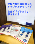 お子さまの「できた!」を見つけ、自分できた! に導く仕組みが詰まったオリジナルテキストで成績アップに導きます。