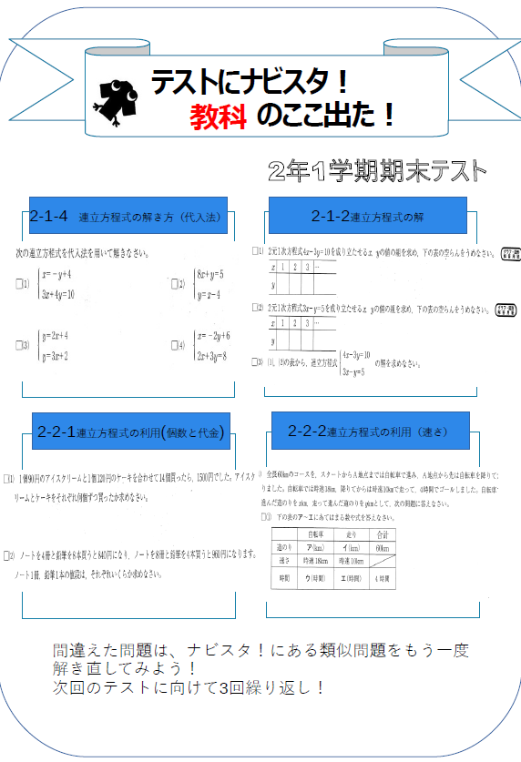 今回のテストもナビ個別の自社教材「ナビスタ!」と近隣中学校の