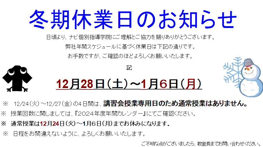 2025年を最高の年にするために、この冬休み期間の過ごし方が重要です!